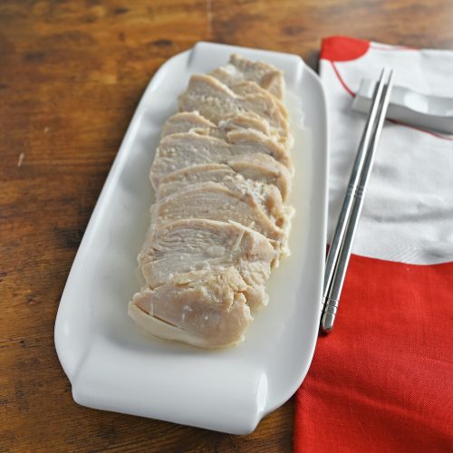 ① 1.ポリ袋に鶏むね肉と塩麹を入れて袋の上から揉み込み30分(〜一晩)冷蔵庫でおきます。