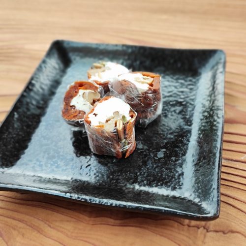 クリーミーでほどよい酸味のクリームチーズに香ばしいナッツを合わせ、干し柿で巻きました。一口で贅沢な味わいを楽しめます!おやつや、パーティーメニューのおつまみとしてもおすすめです。